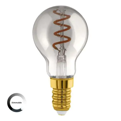 Die Eglo LED Kugel E14 Fadenlampe Smokey 4W 100lm - 820 Extra Warmweiß | Dimmbar - Ersatz Für 15W ist eine effiziente E14 LED-Lampe mit Retrodesign und der perfekte Ersatz für Ihre konventionellen 15W Lampen mit E14. Zudem strahlt sie Licht in der Farbtemperatur 2000K - Extra Warmweiß aus und punktet durch eine lange Lebensdauer.