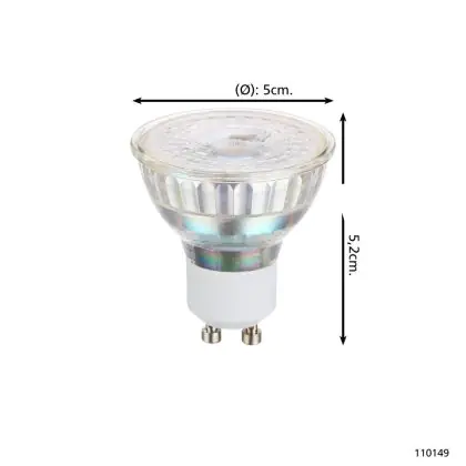 Die Eglo LED-Spot GU10 PAR16 3W 345lm 38D - 830 Warmweiß | Dimmbar - Ersatz Für 50W ist eine effiziente GU10 LED-Lampe und der perfekte Ersatz für Ihre konventionelle Halogenlampe mit 50W und einem GU10-Sockel, bei welchem die zwei Stifte einen Abstand von 10 mm zueinander haben. Zudem strahlt das Produkt Licht in der Farbtemperatur 3000K - Warmweiß aus und punktet durch eine lange Lebensdauer.