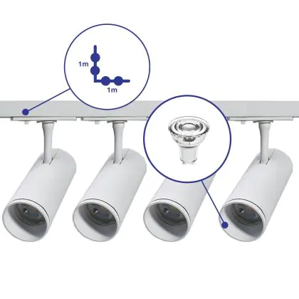 Aufgrund des geringen Energieverbrauchs von nur 3W sparen Sie mit dem LED-Schienenstrahler von Markenlos mindestens 50 % Ihrer Energie - sowie Instandhaltungskosten gegenüber einem herkömmlichen Halogenstrahler.