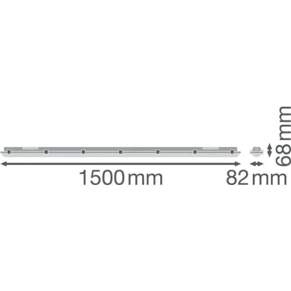 Die Ledvance LED Wasserdicht Deckenleuchte feuchtigkeitsdicht 26W 4000K 150cm kommt nicht nur mit einer besonders langen Lebensdauer von 50.000 Stunden daher, sondern kann auch mit einer guten Energieeffizienz aufwarten. Zudem ist sie dimmbar über die DALI-Lichtsteuerung. Im Kaufpreis ist außerdem eine Garantie von 5 Jahren enthalten.