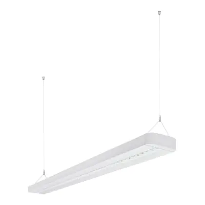 Die LED-Pendelleuchte von Ledvance aus der Modellreihe Linear IndiviLED überzeugt mit einer angenehmen warmweißen Farbtemperatur, einer hohen Farbwiedergabestufe und den Schutzklassen IP20 und IK06. Ein Vorschaltgerät ist nicht vorhanden aber die Leuchte kommt mit einer Notbeleuchtung daher.