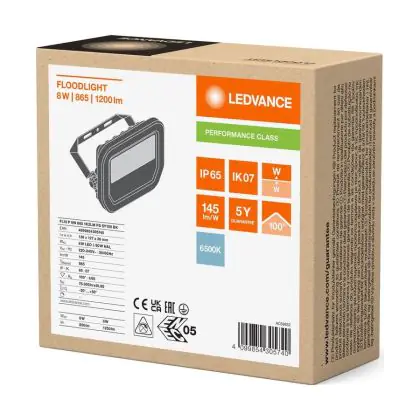Beschreibung Ledvance Led-Scheinwerfer Aluminium Schwarz 8W 1200lm 100D - 865 Tageslichtweiß | IP66 - Symmetrisch