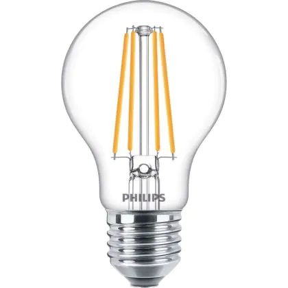 Die Mehrfachpackung 10x Philips Corepro LED Glühbirne E27 Birne Klar 8.5W 1055lm - 827 Extra Warmweiß | Ersatz Für 75W ist eine effiziente E27 LED-Lampe und der perfekte Ersatz für Ihre konventionellen 75W Lampen mit E27-Sockel. Zudem strahlt sie Licht in der Farbtemperatur 2700K - Extra Warmweiß aus und punktet durch eine lange Lebensdauer.