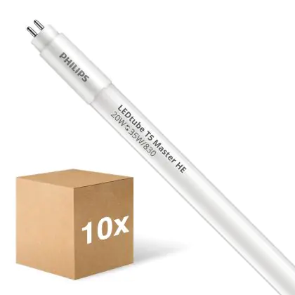 Die Mehrfachpackung 10x Philips LED Röhre T5 MASTER (Mains AC) High Efficiency 20W 2800lm - 830 Warmweiß | 145cm - Ersatz Für 35W ist eine effiziente LED-Röhre und der perfekte Ersatz für Ihre konventionelle Leuchtstoffröhre mit 35W und einem G5. Die Röhre hat eine Länge von 1450 mm und einen Durchmesser von mm. Zudem strahlt das Produkt Licht in der Farbtemperatur 3000K - Warmweiß aus und punktet durch eine lange Lebensdauer.