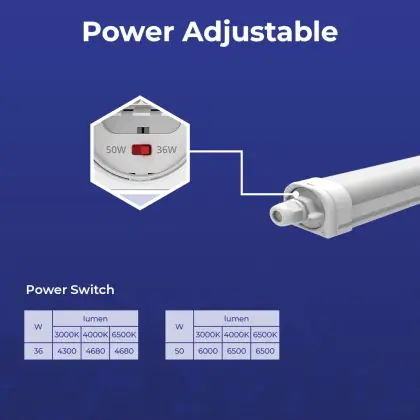 Die Noxion LED Feuchtraumleuchte Ecowhite V3.0 36/50W 4680/6500lm - 830-865 CCT | 150cm ist eine Feuchtraumleuchte. Sie strahlt Licht in der Farbtemperatur 3000K - 4000K - 6500K CCT aus und punktet durch eine lange Lebensdauer. Diese Leuchte ist speziell zur Verwendung in Feuchträumen (Keller, Waschräume, etc.) vorgesehen.