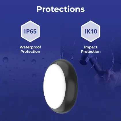 Die IK-Schutzklasse zeigt die Schlagfestigkeit einer Leuchte sowie den Schutz vor Vandalismus an. Sie wird in zwei Ziffern ausgedrückt (IK00 - IK10). Produkte mit IK00 sind somit nicht geschützt gegen Schläge oder Stöße jeglicher Art. Produkte mit IK10 bieten Schutz gegen Stöße von 20 Joule und sind gegen vandalismus-sicher. |