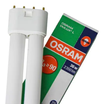 Die Osram Dulux L De Luxe 36W - 954 Kaltweiß | 4-Pins - Höchste Farbwiedergabe ist eine Kompaktleuchtstofflampe von Osram. Das Produkt mit 4 Pins strahlt Licht in der Farbtemperatur 5400K - Kaltweiß aus und punktet durch eine lange Lebensdauer.