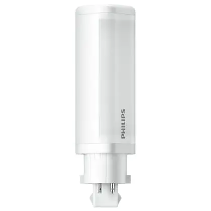 Mit der Philips CorePro PL-C LED 4.5W 830 | Warmweiß - 4-Stift - Ersetzt 10W & 13W wählen Sie eine energiesparende und nachhaltige Lichtlösung. Setzen Sie die Lampe in Downlights ein und erhellen Sie Meetingräume, allgemeine Bereiche oder Verkehrszonen (z.B. Treppenhäuser, Flure, Wege). Aufgrund der rotierbaren Endkappen können Sie das ausgestrahlte Licht besonders zielgerichtet steuern.
