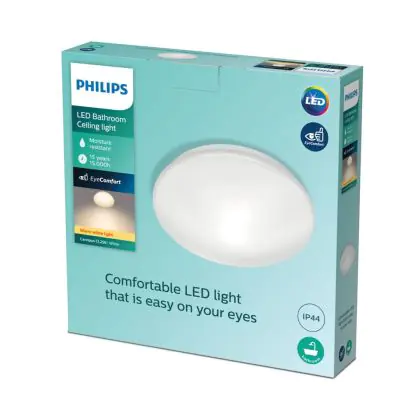 Die Philips LED Deckenleuchte Canopus Weiß 17W 1500lm - 827 Extra Warmweiß | IP44 ist eine Feuchtraumleuchte. Sie strahlt Licht in der Farbtemperatur 2700K - Extra Warmweiß aus und punktet durch eine lange Lebensdauer. Diese Leuchte ist speziell zur Verwendung in Feuchträumen (Keller, Waschräume, etc.) vorgesehen.
